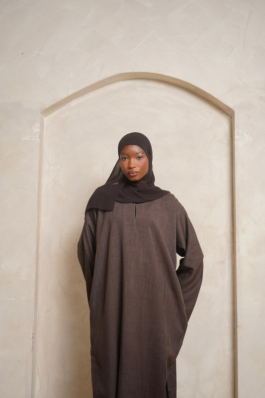Back by popular demand, our 100% premium linen abayas are loved for their breathable comfort and cozy fall-winter feel. Designed with a relaxed, elegant silhouette for effortless everyday wear.