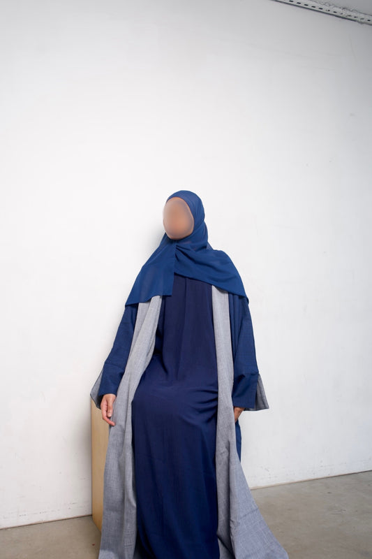 Royal Blue Reversible Linen Abaya Set