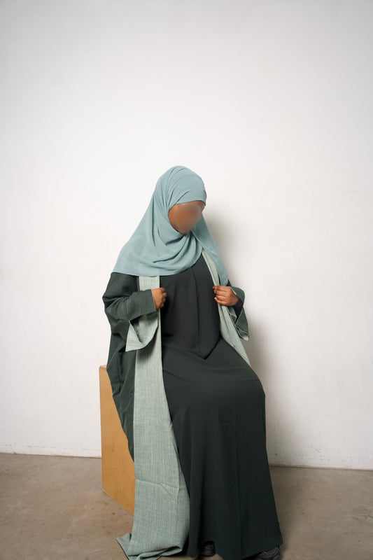 Green Reversible Linen Abaya Set