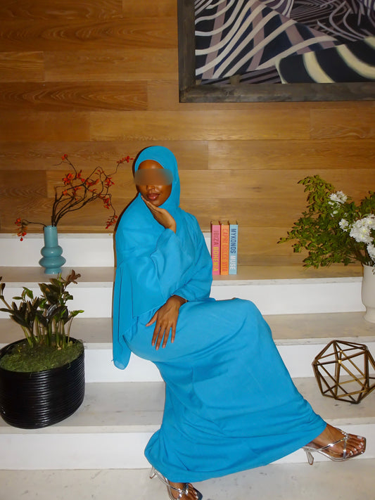 Aqua Blue Linen Abaya